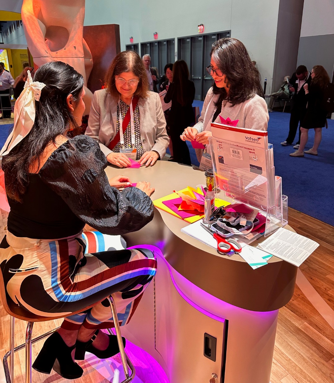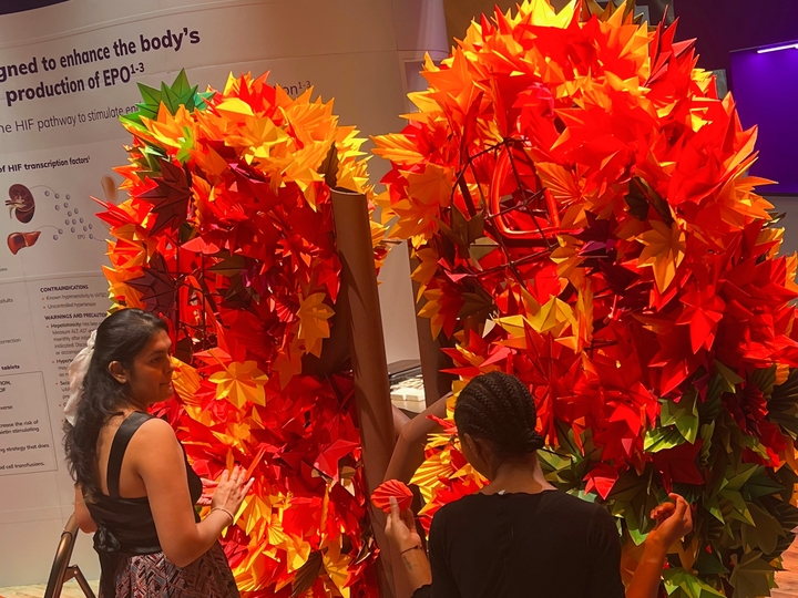 People whose kidneys are failing often also experience anemia. It turns out that the kidneys play a key role in producing red blood cells, or hemoglobin, which carry oxygen throughout the body. For 30 years, the only treatment was an injectable drug with unwanted side effects. Vafseo, a new drug, is based on recent Nobel Prize-winning science and works by harnessing the body’s natural response to low oxygen and stimulating red blood cell production. So, we built a booth inspired by nature, with organic curves, foliage, and a giant “Kidney Tree” sculpture. An origami artist taught doctors how to fold origami leaves and affix them to the Kidney Tree, helping it bloom. This tactile, 3D representation of of the brand grew throughout the conference, attracting repeat visits to the booth and engagtement.